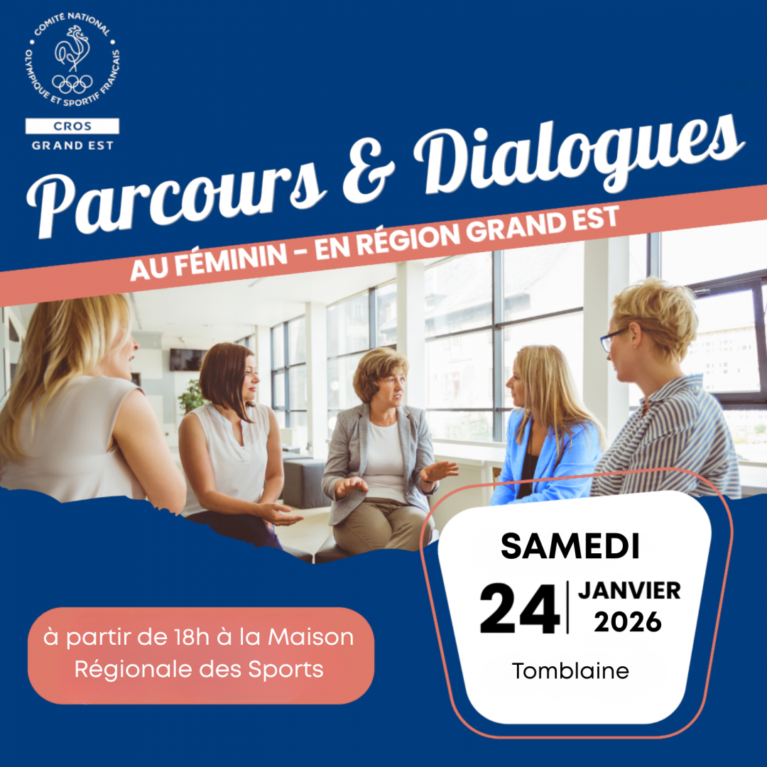 Le CROS Grand Est vous invite à une soirée d'échanges avec des femmes dirigeantes et futures dirigeantes de notre région, ayant participé au Club des 300 du CNOSF, programme d'accompagnement des femmes vers des fonctions dirigeantes du mouvement sportif. Les hommes intéressés et engagés sur cette thématique sont bien entendu également les bienvenus.